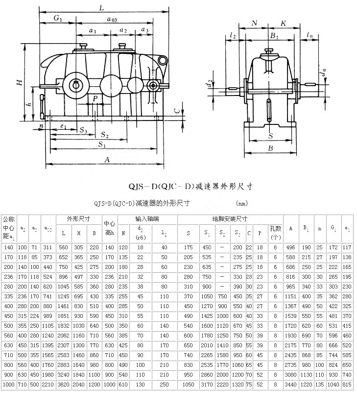 1)結構型(xing)(xing)(xing)式 QJ-D型(xing)(xing)(xing)減速器分為(wei):QJR-D(QJB-D)型(xing)(xing)(xing)為(wei)二(er)級(ji),QJS-D(QJC-D)型(xing)(xing)(xing)為(wei)三級(ji)。QJRS-D(QJD-D)型(xing)(xing)(xing)為(wei)二(er)級(ji)安(an)裝尺寸(cun)三級(ji)速比。
