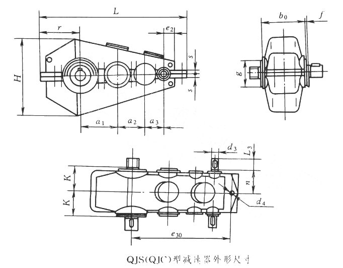 | QJS中硬齒面減速機外形及安裝尺寸 |