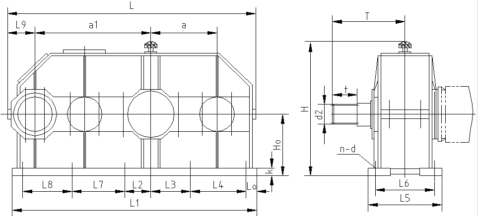 H型減速(su)器外形尺(chi)寸,見圖14、表16: